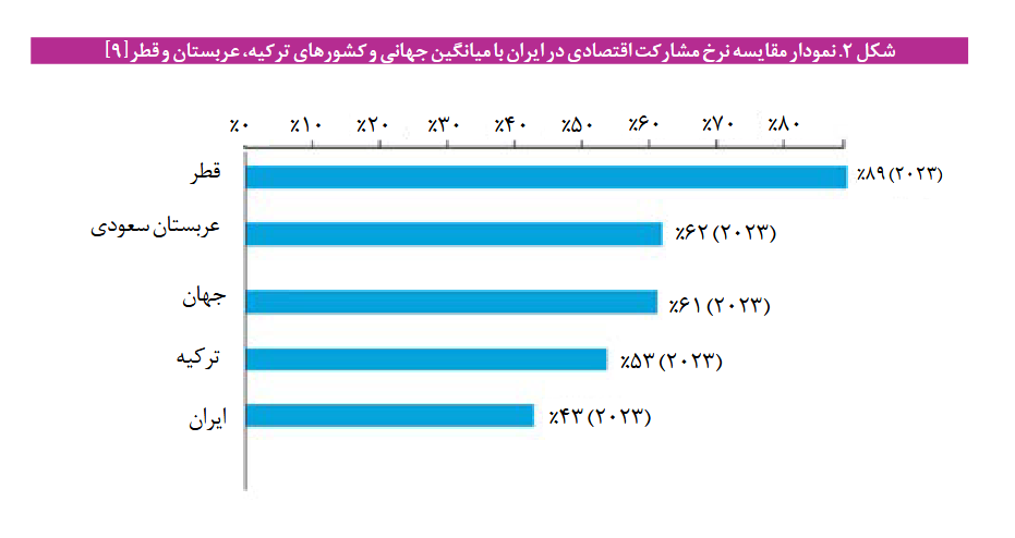 یکی از دلایل اصلی این نرخ مشارکت پایین، سهم ناچیز زنان در جمعیت فعال است، به طوری که بیش از ۷۰ درصد از جمعیت غیرفعال کشور را زنان تشکیل میدهند . یعنی بازار کار برای ورود زنان یا پر از مانع است یا جذابیتی ندارد.