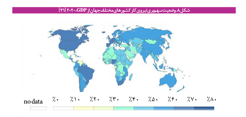 در نهایت، «ارزانسازی نیروی کار» در دو ساحت عقبماندن مزد از تورم و کاهش سهم کار از درآمد ملی به اوج رسیده است. در حالی که در سال 2020 میانگین جهانی سهم نیروی کار از تولید ناخالص داخلی (GDP) حدود ۵۳.۸ درصد است، این شاخص در ایران ۳۹.۸ درصد بوده است. آمارهای سال ۲۰۲۰ نشان میدهد ایران در منطقه غرب آسیا نیز از بین ۱۴ کشور، رتبه دهم را دارد و پایینتر از کشورهایی چون عراق و سوریه قرار گرفته است. این دادهها تأیید میکنند که ایران نه تنها در منطقه، بلکه در مقیاس جهانی، یکی از ارزانترین نیروهای کار را دارد.